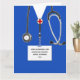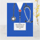 Kreativ examensbevis för sjuksköterskeutbildning med blå sjukhusställ. För att anpassa, redigera texten för att lägga till sjuksköterskans namn, universitet och år.