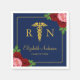 Sjuksköterskeexamen med rosa och röda rosor mot en marinblå bakgrund. Guld-kaduceus och skrivstil-typografi.