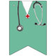 Kreativ dekor för sjuksköterskefest för sjuksköterskeexamen eller hälsovårds firande med sjukhus kläder och ränder.