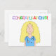 Illustration av en blond sjuksköterska med färglös text med texten "Grattisar"!