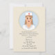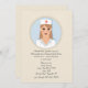 En snygg sjuksköterska visas i en rund dekal med mellanbrun bakgrund. En perfekt inbjudan till sjuksköterskeexamen eller till en ”nurse pinning”-ceremoni.