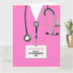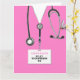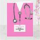 Kort för sjuksköterskor eller doktor studenten med rosa sjukhusskrubbar, ett stetoskop och en illustration från den schweiziska armén knivar. Om du vill anpassa redigeringstexten för att lägga till sjuksköterska, doktor eller läkarassistentens namn.