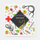 Studentfest av blöjor från daghem med unika medicinska förråd, studentmössa och blommor från svart och guld. Så här anpassar du redigeringstexten för att lägga till namn i sjuksköterskegrad.