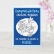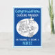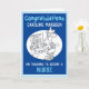Grattis till en sjuksköterska som har avslutat sin sjuksköterskeutbildning. Rol illustration av en sjuksköterska som läser ett papper med en gissa-vad-det-är-tävling. Grattiskort för en nyutexaminerad sjuksköterska.