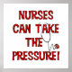 Ett stetoskop och en röd textsjuksköterska som läser sjuksköterskor kan ta trycket! Sjuksköterskor T-shirts, påsar, mugg, kort, klistermärken och annat för sjuksköterskor och sjuksköterskor.