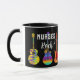 Fira dina sjuksköterskor eller familjemedlemmar oavsett om de tar examen eller bara gör ett bra jobb med denna roliga Sjuksköterskor Rockar kaffekopp med coola färgglada psykedeliska gitarrer och modern rock and roll typografi. Unika elektriska gitarrer och akustiska gitarrer detaljerade illustrationer i levande blå rosa lila grön blå gul och orange på en svart bakgrund. Originalkonst av konstnären Catherine Sweetman