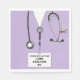 Unika napkins i doktor för läkarskola i studenten med lavender-sjukhusskrubbar, stethoscope och lustiga schweiziska arméns knivar. Redigera text om du vill lägga till doktor namn.