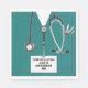Medicinsk design med tealsjukhusskrubbar, ett stetoskop och en schweizisk armé knivar. Redigera text om du vill lägga till doktor namn.