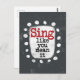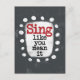 En söt typografisk musikdesign som säger "Sjunga som du Elak den". Den har svart och röd text på en vit rektangel med funky, lekfulla vita prickar runt den, allt på en grått-bakgrund.