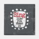 En söt typografisk musikdesign som säger "Sjunga som du Elak den". Den har svart och röd text på en vit rektangel med funky, lekfulla vita prickar runt den, allt på en grått-bakgrund.