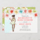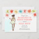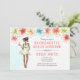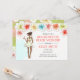 Sjungbröllopsutflykt till stranden - inbjudan har ett tropiskt tema med hibiskusblommor och en afroamerikansk brud som ska gifta sig och njuter av en cocktail. Finns tillgänglig med blond, brun, rödhårig flicka och med mörk eller ljus hy.