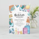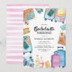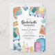 Snygga inbjudningskort till möhippa med akvarellmotiv av resrelaterade föremål som resväskor, kamera, karta osv, och en elegant mall som är enkel att anpassa.