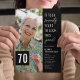 Skapa oförglömliga ögonblick med våra moderna 70-årsfirande-inbjudningar! Karakteriserade av en sofistikerad svart bakgrund och ett roligt talesätt - 'Det tog sjuttio år att se ut så här!' - erbjuder dessa inbjudningar också en praktisk textmall som du enkelt kan anpassa. Lägg till celebrantens foto, och du har en inbjudan som är lika extraordinär som den milstolpe den firar!