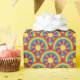Den här färgstarka presentfigursättningen har en groovy-grafik mönster som inspirerats av 1970-talet med överlappande skivor i en regnbåge av färg centrerad med en något vriden, skuren sol. Redigera design om du vill ändra bakgrundsnyansen.