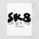 SK8 är förkortningen av skridskote och denna förkortning understryks av tecknad stil hjul.