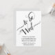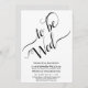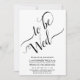 Den vackra bröllopsinbjudan är både enkel och elegant. Den svarta och vita designen har kalligrafi i finare som visar "ska vindas" över arbetsytans 2/3 översta del med enkel text nedan. Modern minimalistisk utformning.