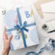 Skåda för Pojke för baby, blått Mönster, vattenfär Presentpapper