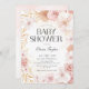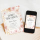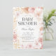 rosa blommigt Flickduschinbjudan. Snygg elegant modern design med handmålade botaniska accenter. Fintvätt med fintvätt, tropisk blomma, torkad löv, pampas grästypografi. Du kan välja utskrivna inbjudningar och/eller en digital mall för omedelbar nedladdning. perfekt av trendigets bohemiam för en snyggt babydusch i firande.