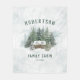 Håll dig mysigt i vintern i din familjetabin........................................................................................................................................................................................... Den har en rustik vattenfärgsscen i en stuga som är kapad i skogen med snö-täckt gräs träd, med namn och år.