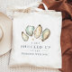 Tote bags har en grupp mjuk kräm och vattenfärgsostron och pärlbilder, där "I har har hamnat i bröllop vid [namn]" i den klassiska marinblå texten. Med perfektens luddiga val för strandtemat, sommar eller nautiska bröllop kan du enkelt anpassa de här kustnära bröllopen med ditt namn.