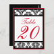 Skaka med Bordsnummer i Gräns (svart/röd/vit)... De här bordsnumren för elegant och klassisk damm är perfekten som tillägg till din bröllopsmottagare. De kommer lätt att vägleda dina gäster på bröllopet till deras bord. Besök WindyCityStationery.com för hela raden "Damask With Gräns"-bordsnummer i ett stort urval av färg, och matcha "Damask"-frimärke, inbjudningar, klistermärken med mera.