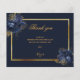 Ett enkelt och elegant tack för att du fick ett kort med foto. En mörk blått bakgrund, en faux guld ram och blå blommigtar. Anpassa och lägg till tackkortet.