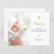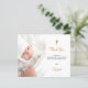En vit och faux guld-minimalistisk baptism tack vare ditt kort. Anpassa och lägg till ditt foto av barnet, tackkortet och namn. Könsneutralt.