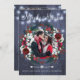 Vinterskorstenshuset trendig bröllop Merrily Married-fotokort med vit och röd burgnyck trendig ro och blåser andedräkt med säsong gräs grönt fir grenar och hullbär över en mörk marin ljus som bakgrund med strängen namnteckning.+++++++ Personliggör det med foton, och text på framsidan och baksidan! ++++++++++++ Ett elegant för att tillkännage giftermål, ge tack och skicka kärlek och hälsning efter en vinterjul i bröllop eller som ett nygifta par.