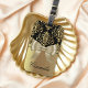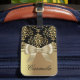 Skador av guld och svart med bogblad och eget namn bagagebricka