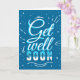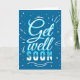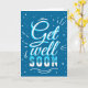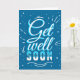 Blå och vit typografi "Hämta snart" hälsningskort. Skriva anpassningsbarnas meddelande inuti.