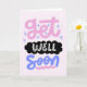 Modern rosa-typografi, hälsningskort "Kom snart". Skriva anpassningsbarnas meddelande inuti.