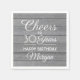 Lägg till en personlig med elegant till födelsedagsfest dekorationer med dessa snyggt faux grått-papprare blöjor. Design har modern manusgrafi som kan redigeras "Skål till 30 år" på en rustik grått-träbakgrund. Den här mallen är inställd för ett 30års födelsedag-firande, men är enkel att anpassa till ett annat år eller en annan ålder. Grattis på födelsedagen!