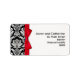 Svarta och vita adressetiketter med rött båge. Helt Anpassade. Matchande bröllop-lager är tillgängligt från det här arkivet.