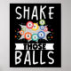 Den här roliga, lyckliga bingo-spelpresenten, lustiga spelspeldesignen läser att skaka bollarna. Det skapades med kärlek och du får se ett roligt turspel.