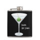 Shaken Not Stirred är ordalydelsen i ett retroklassiskt teckensnitt. Har ett martinistiskt glas med vodka eller gin, och en grönt oliver med tandkräm. På en svart bakgrund. Mycket klassiskt och sofistikerat. Du kan ändra ordalydelsen eller ta bort markeringen för att lämna tom.