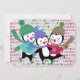 Skating Penguins Julhälsningar ett inbjudningskort med en typografisk text på vit front som läser Season Greetings och Glad helg med tre skridpenguiner på vinterhalsen sticka och strimlade halsdukar. Kortet har ett par mittensidor, isskal, snöflingor och ett område som du kan lägga till ditt textmeddelande och namn. Vi har matchande porto, klistermärken, returetiketter och kuvert.