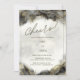 Skål! Black Guld Marble Glam Bröllopsbjudan Radera ett glas för evigt med den här hisnande bröllopsinbjudan "Cheers!", som innehåller en lyxig svart, vit och guld marmor eller alkohol bläck. De häpnadsväckande accenterna och det sofistikerade manuset i guld skapar ett luft av enastående elegans och modern glamor, perfekt för en chic och ett minnesvärt firande. Anpassade för all information du har om bröllop anger inbjudan en dramatisk och snyggt ton för din speciella dag."