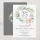 Med en delikat akvarellblommig girland är denna chic botaniska 25-årsjubileumsinbjudan personlig med din speciella jubileumsinformation. Baksidan har en matchande blomsterkrans som ramar in dina jubileumsdatum i elegant text på en silverbakgrund. Designad av Thisisnotme©