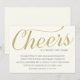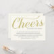 Denna eleganta och stilrena inbjudan är perfekt för en elegant fest som firar ett lyckligt pars 25-års bröllopsdag. Inbjudan har känslan "Skål för tjugofem år" i ett vackert guldfärgat skrivsätt, mot en off-white krämfärgad bakgrund.