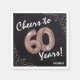 Svart och ro guld "Cheers to 60 Years" Födelsedagsfest Napkins! Konstruktionen har en rustik svart krita med en faux ro guld helum sextio ballong, faux ro guld konetti och namn.