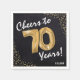 Svart och guld "Cheers to 70 Years" Födelsedagsfest Napkins! Konstruktionen har en rustik svart krita med faux guld helum sjuttio ballonger, faux guld konetti och namn.