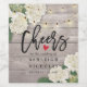 Modern bröllopsfavoritmallar för Vin - Elegant Vita vackra vattenfärgsblommor och String Ljus på Rustic Wood Background. En Perfekt för din stora dag. Alla textstorlekar i stil, färg, kan ändras för att passa dina behov!