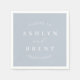 Dessa personliger Inledande cocktailservetter är perfekt för en bröllop, förlovningsfest, möhippa eller repetitionsmiddag. Utformningen har trendande dammiga blå färg med enkelt, modernt typsnitt. Anpassa dem med namn för att göra dem till ett slag!