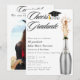 Skål för examen Silver och Guld Champagne Toast Examen Fest Tillkännagivande - Ett modernt och unikt personligt tillkännagivande för examensfest. Med en festlig champagneflaska som öppnas. Frasen "Skål för examen" är skriven med kalligrafisk typsnitt. Redigera denna examensinbjudan för högskola eller universitet med dina egna evenemangsuppgifter. Anpassa denna inbjudan ytterligare genom att lägga till ett foto av examen på baksidan. Finns även som direkt digital nedladdning, perfekt för att skicka via text, e-post eller sociala medier.