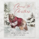 Perfekt för helgdag-gåva ge, den här unika vin-etiketten har en rustik snö-scen i vattenfärger. En stor grizzly bär kulor i snöfallet med en röd mörk. Snö täckte fir träd punkt i landskapet. En underbar handskriven spådomar av typen ansikten ut "Cheers till jul" i vintage stil. En textmall längs den nedre delen av designen har plats för att du ska kunna anpassa den med ditt eller dina namn och typen av vin. Du kan ersätta den här texten med valfri text som du vill använda för kostym i tillfälle. Dessa vin-etiketter är en underbar idé för ge som gåvor från värdinna, tack för gåvor, för vänner, grannar, familj och affärspartner. De är också en bra idé för en "Ugly Sweater Party" under helgdagarna.