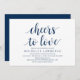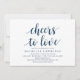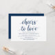 Modern kalligrafi (Skål för kärlek) Bröllopsinbjudningskort. Bjud in gästerna med detta perfekta inbjudningskort. Lägg till din bröllopsdetaljer i matchande marinblå formulering.