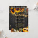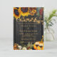 Elegant rustik vin-tema förlovningsfest inbjudan med vackra solrosor, strängar av gnistrande ljus, en orange akvarellpumpa, guld typografi skrift och två glas rött vin.++++++++++++ Lämplig för höst rustik landsbygd vingård förlovningsfest / coupleshower firande.