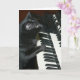 Svart katt som spelar ett organ eller som kanske spelar på ett skäl.