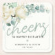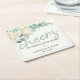 Lägg till en personlig finish till din bröllopsfest med unika anpassade rustika vattenfärg magnolia eukalyptus fyrkantiga drinkunderlägg. All text på denna mall är enkel att anpassa, inklusive texten som läser "Skål för lyckligt slut." Perfekt som bröllagspresent.