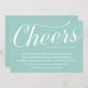Denna vackra inbjudan till 25-års bröllopsjubileum har frasen "Skål för tjugofem år" skriven med vit kalligrafi mot en vacker blå bakgrund.